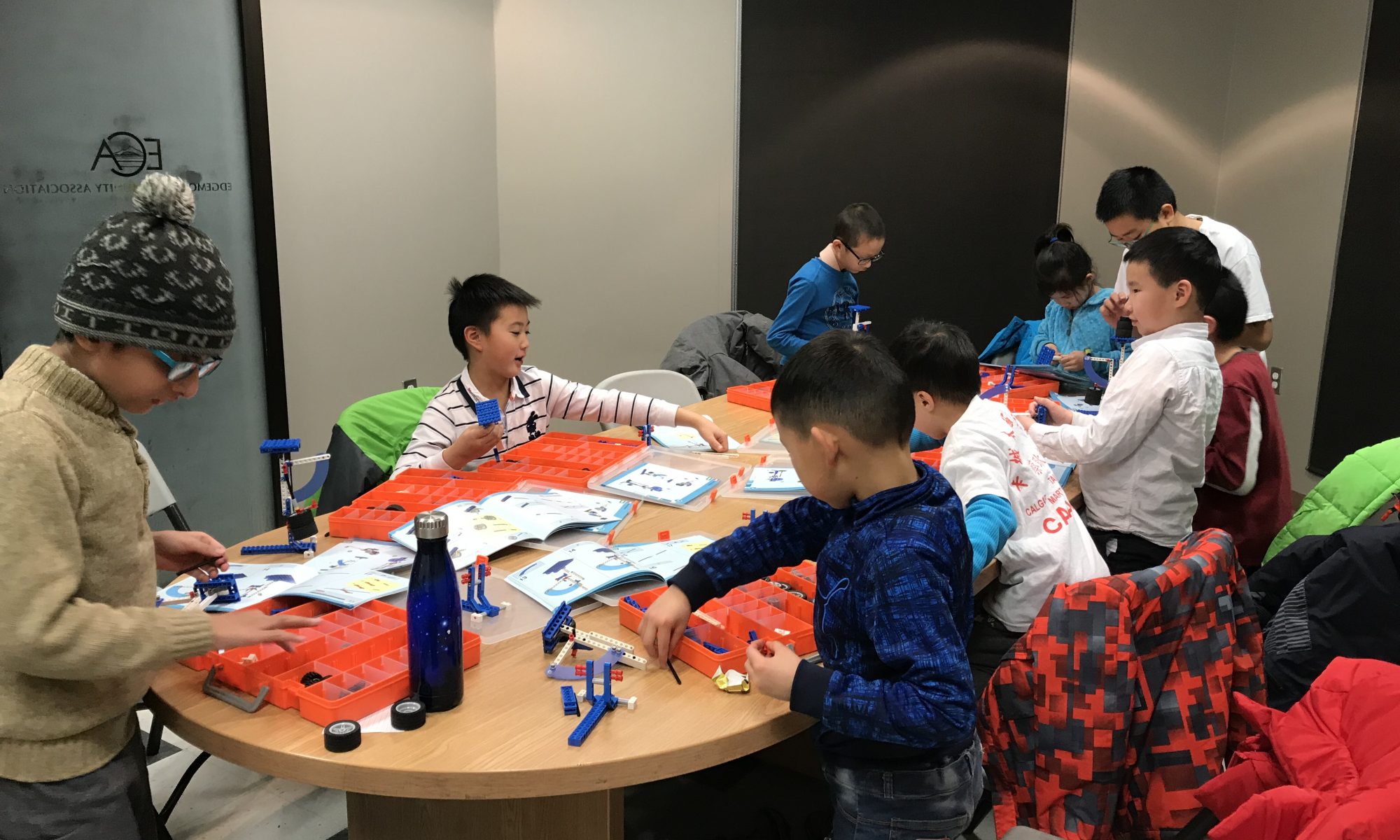 The topic of today is the Walker. The students built a big cricket (a legged robot) to learn the basic knowledge of mechanical balance and friction. The legged robot is comprised of four legs with a wheel at each end, it can walk power by the motor. The motor axis motions are transferred by a worm gear, and then to the legs. The STEM information behind this section is the basic mechanical mechanism and concepts including the worm gear, friction and balance. All students finished the model and conducted tests by changing the legs’ length to compare the walking speed and balance. They competed with each other and had a lot of fun.