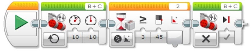 - Wait – Gyro Sensor – Compare Angle – Type [3] (Greater Than or Equal), Degrees [45]