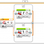 The students will create an automated, driverless vehicle that can follow a line. They will explore how an automated vehicle might be guided along a road or track. The “switch” block will be used, which works very similar to the “time” block who can control almost all sensors. The program will work best using black or blue tape on a very light (or white) surface.
